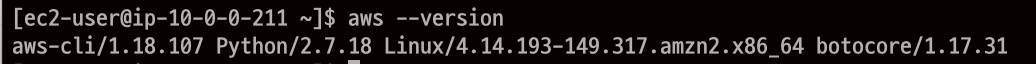 Amazon Linux 2 로 진행을 합니다. Amazon Linux2에는 기본적으로 AWS CLI 1버전이 설치되어 있습니다.