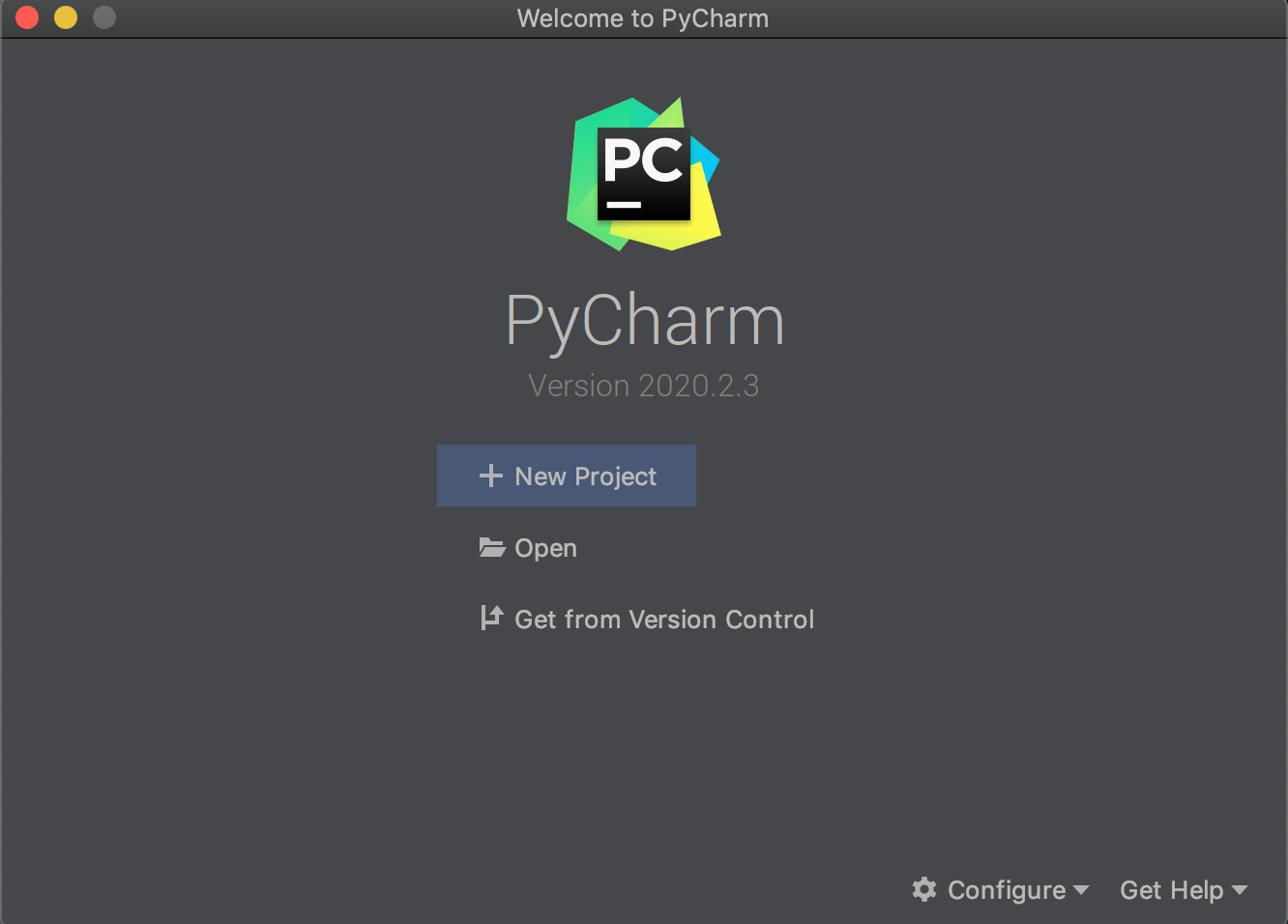 실행하면 아래와 같이 파이참의 첫 화면이 보일겁니다.