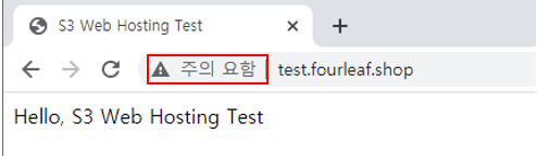 글 내용 중 URL 입력하는 부분을 보면 "주의 요함"을 확인할 수 있습니다. 해당 내용은 암호화 된 방식이 아닌 HTTP 프로토콜로 통신이 되고 있다는 것을 의미합니다. 테스트 환경에서는 크게 문제가 없으나, 운영 환경에서는 보안이 중요하기 때문에 HTTPS 통신을 사용할 것을 권장 합니다. 따라서 HTTPS를 사용하기 위해 이번 글에서는 AWS의 CloudFront 서비스를 이용하여 HTTPS 통신으로 정적 웹 사이트 설정하는 법에 대해서 알아보겠습니다.