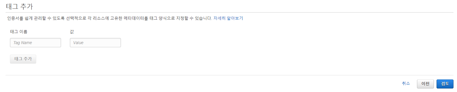테스트 겸 작업이기 때문에 Tag는 따로 설정하지 않고 넘어가도록 하겠습니다.