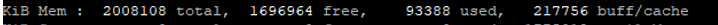 전체 물리적인 메모리, 사용하지 않은 여유 메모리(free), 사용중인 메모리(used), buff/cache 된 메모리(buff/cache)