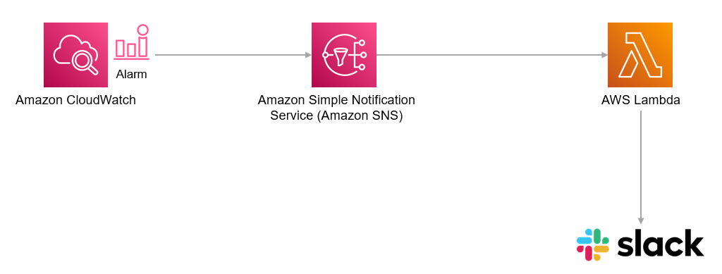 이 기능은 모니터링에 큰 도움이 됩니다. 하지만 항상 AWS Console을 보면서 모니터링을 할 수 있는 환경이 쉽지 않으므로, 설정한 Alarm(경보)이 발생하였을 때, AWS의 SNS, Lambda를 이용하여 Slack과 연동하여 Slack으로 Alarm(경보)를 받는 방법을 진행하겠습니다.