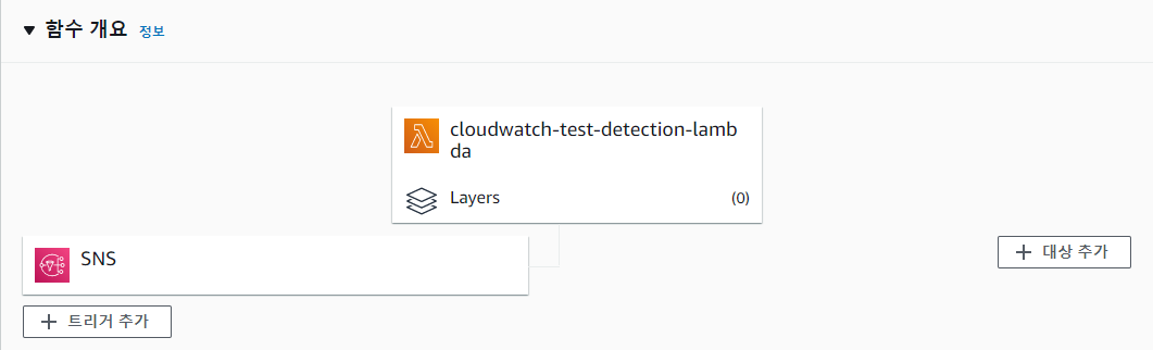 함수 생성을 클릭하면, 아래와 같이 SNS 트리거가 추가 된 함수가 생성됩니다.