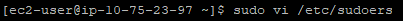 sudo vi /etc/sudoers