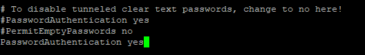 -> PasswordAuthentication yes (yes로 변경)