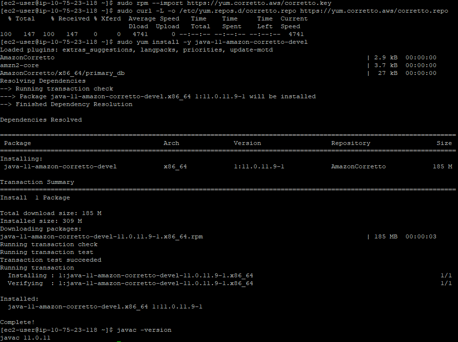 sudo yum install -y java-11-amazon-corretto