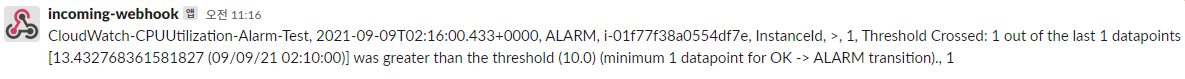 stress 테스트나 이미 가지고 있는 test 데이터를 test에 넣어주어 Slack Message를 받아 보도록 하겠습니다.