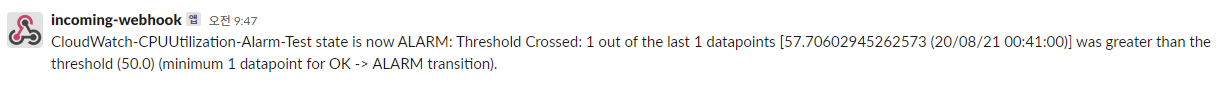 AWS 에서 제공해주는 템플릿 Lambda 코드를 사용하면 아래와 같은 Slack Message를 받을 수 있습니다.