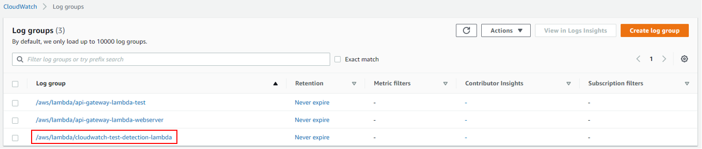 Log group에서 해당되는 항목을 클릭하면 Log streams이 나오고 가장 최신의 Log stream을 클릭합니다.