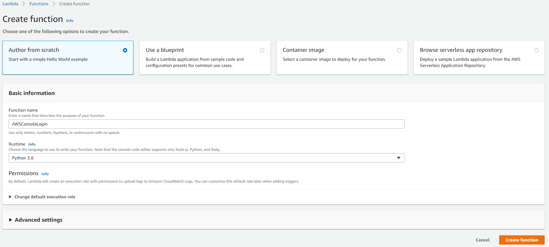 2. Lambda Function 만들기