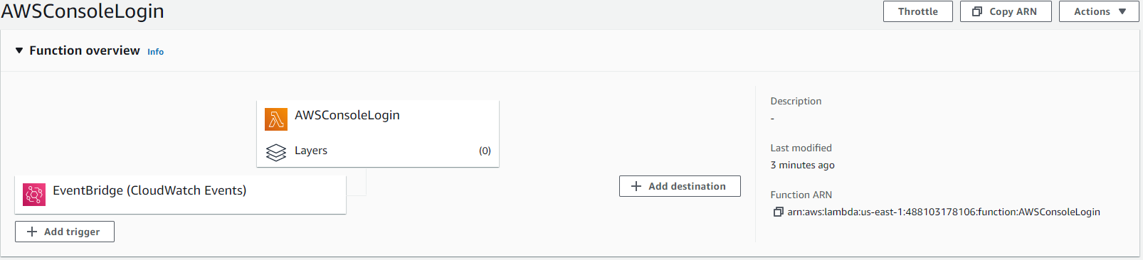 AWS Console을 이용해서 접속 했을 때 그 이벤트가 발생했을 때 람다 펑션에 트리거가 발생 할 수 있도록 설정을 하는 부분입니다.