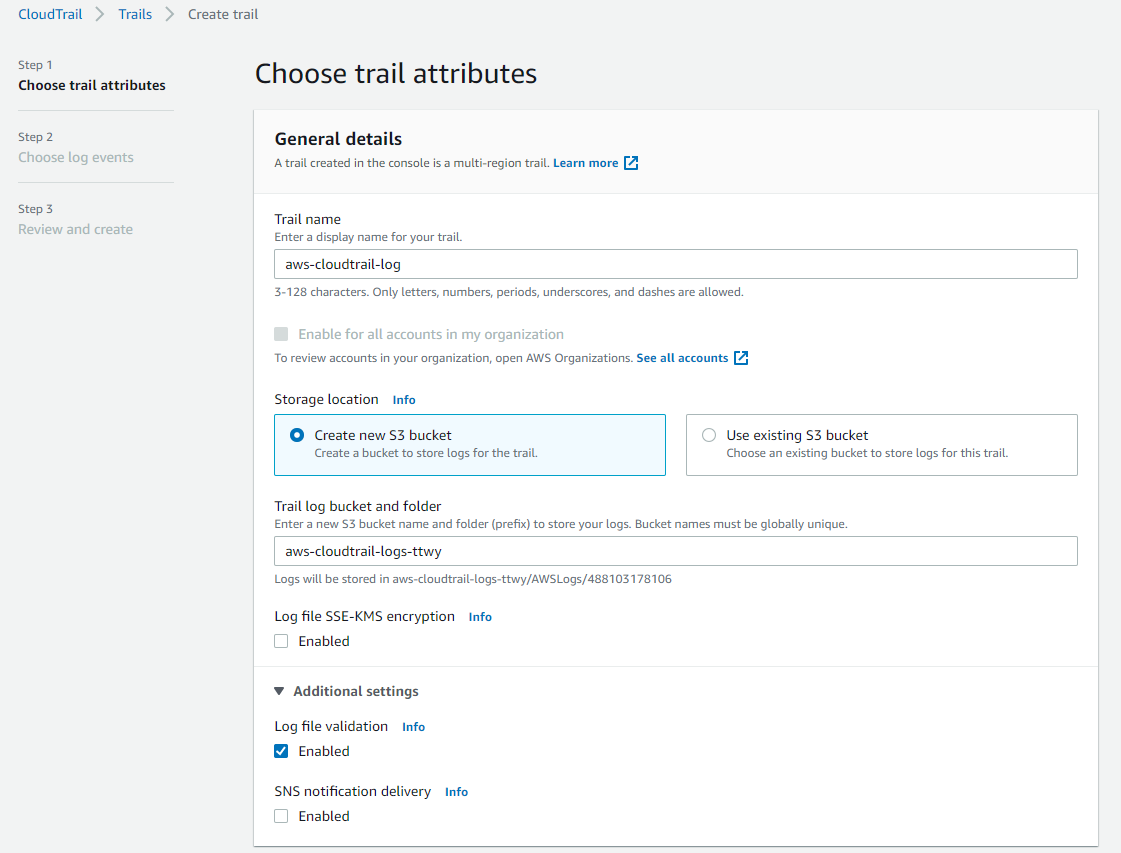 1. CloudTrail 생성 및 설정