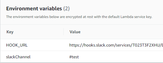 이전 Slack 연동하기에서는 slackChannel을 Environment variables에 선언만 하고 사용하지 않았지만, 이번글에서는 사용을 한번 하기 위해 slack_message의 'channel' 부분을 추가하였습니다. 위와 같이 슬렉 채널로 구분할 필요가 있다면 위와 같은 방식으로 작성하시면 됩니다.