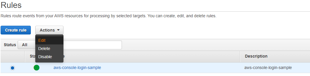 필수 값인 Name을 작성 후 Create rule을 클릭합니다.