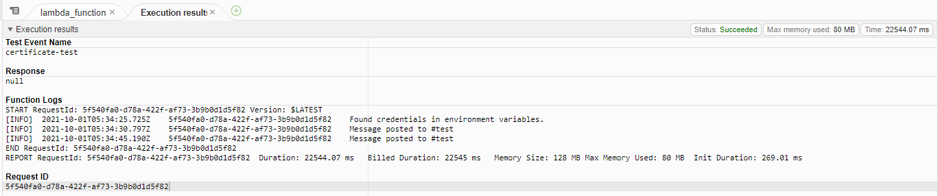 우와 같이 Lmabda function이 정상적으로 수행되었으며, 아래와 같은 Slack Message를 받게 됩니다.