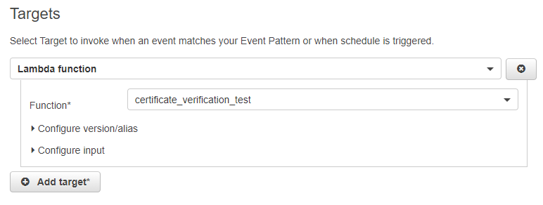 Targets은 위에서 만들어 주었던 Lambda function을 선택합니다.