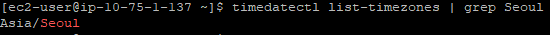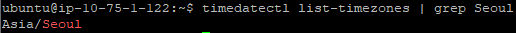 list가 많이 나오기 때문에 grep 명령을 이용하여 설정할 timezones이 있는지 확인합니다.