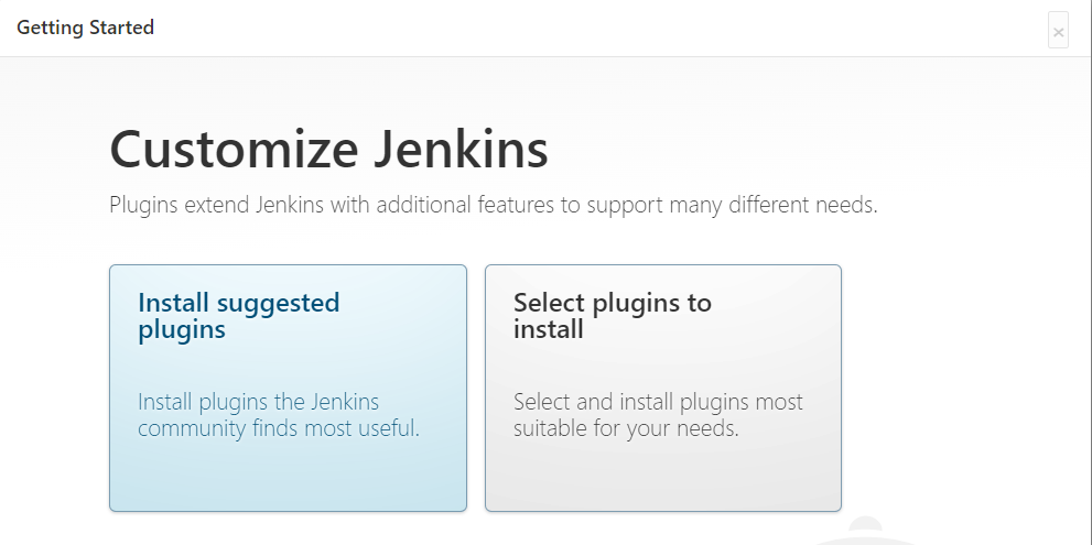 Jenkins를 전반적으로 살펴 본다면 Install suggested plugins를 선택하여 설치를 진행하면 되며, 필요한 plugin만 설치하여 빠르게 테스트 해보고 싶다면 Select plugins to install을 선택하여 필요한 plugin만 빠르게 설치하여 테스트를 진행하시면 됩니다.