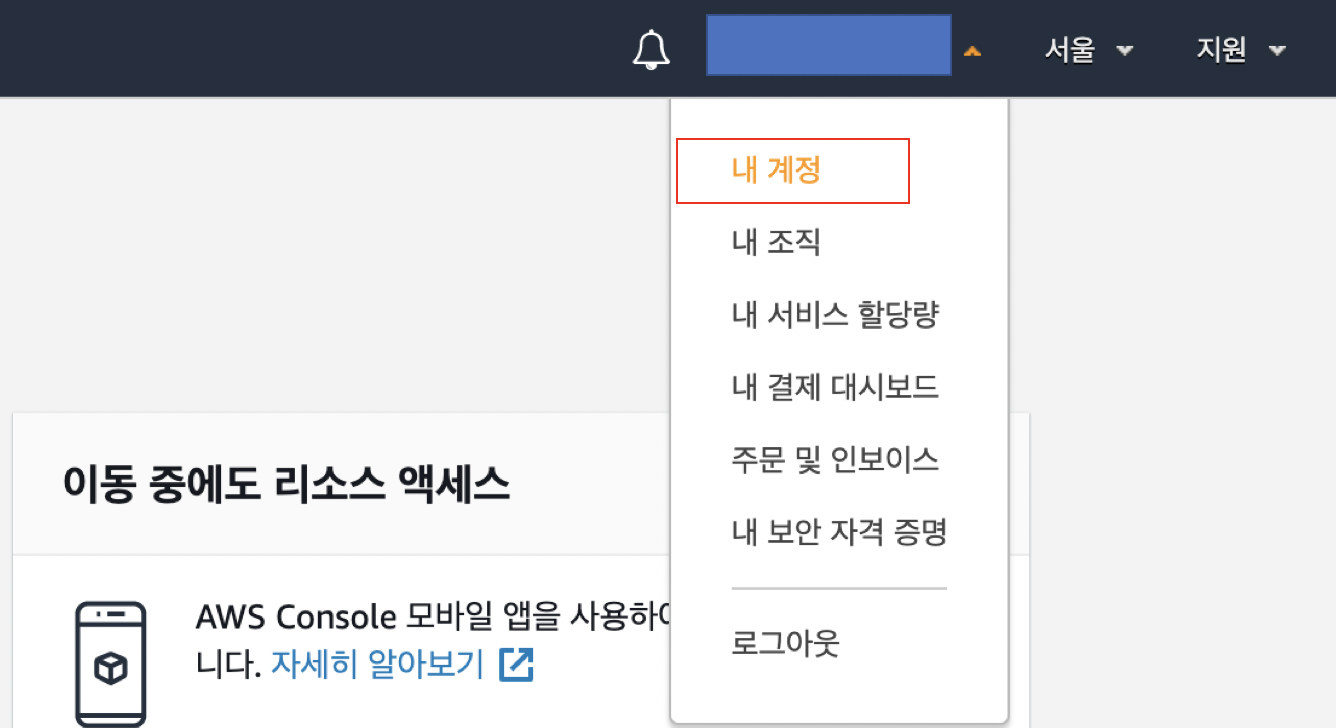 ROOT 계정을 클릭하여 > 내 계정을 클릭합니다.